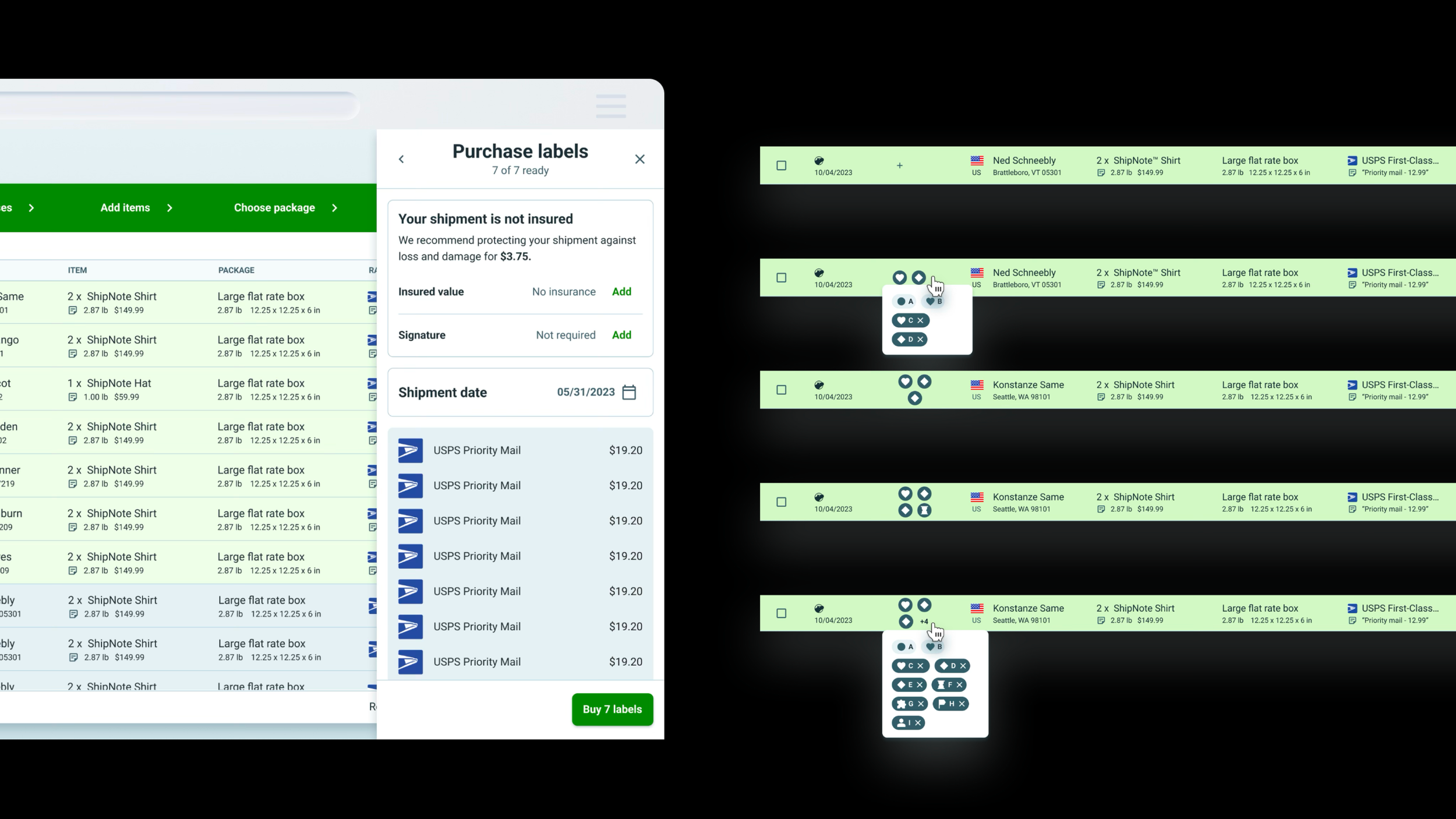 Owned the web channel of label purchase flows. Led the definition of core label purchase flow and routing all stray workflows to a single consistent, scalable workflow for small to medium size e-commerce businesses. Created low fidelity and high fidelity functional prototypes to test mobile and desktop single and bulk label purchases, and to communicate vision to product leadership. Published and maintained a Figma Component Library that encoded workflow standards, responsive behaviors, and re-usable experiences.